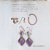 それぞれの天然石の個性豊かな色形表情が響き合うピアスです。さり気ないデザインは動くたび耳元で揺れて輝きます。