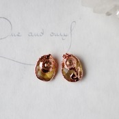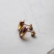 素材である銅は、赤みのある金色があたたかく、使い込む程にアンティークな質感へと変化していきます。天然石のラフな輝きと植物の造形。自然そのままの美しさで耳元を飾るアイテムです。