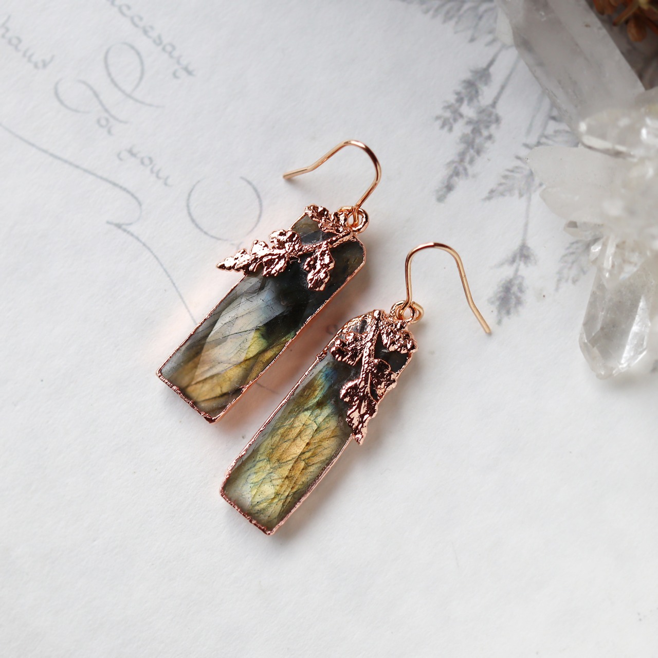 ラブラドライトと葉っぱピアス