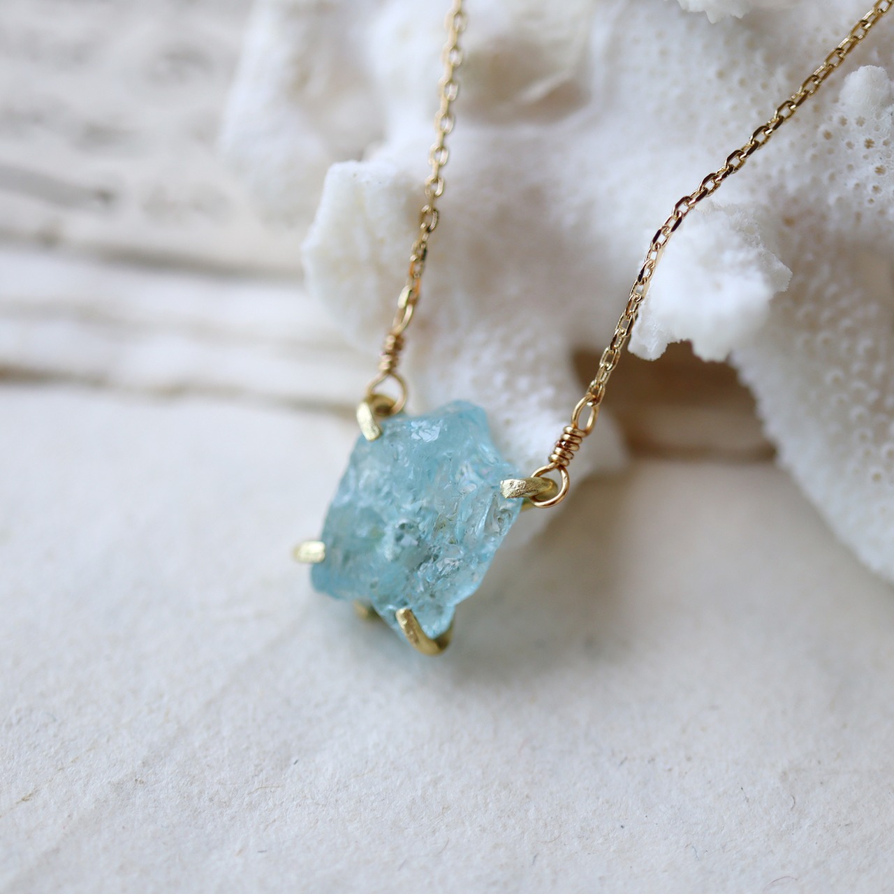 オーダー 原石アクアマリンのネックレス