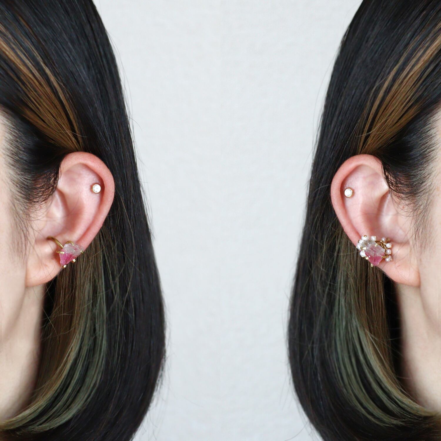 原石ウォーターメロントルマリンのイヤーカフ w1419a