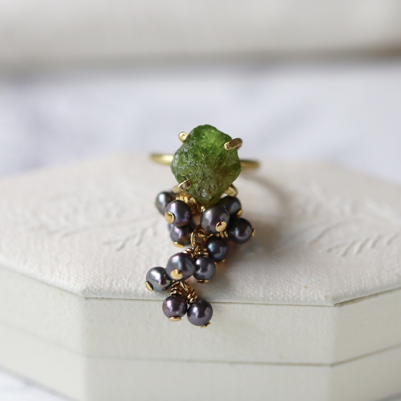 ガーネットには赤のイメージが強いですが、実は緑・黄色・オレンジなど様々な色味があります。グリーンの色味は鉄・クロム・バナジウムなどが入り込むことによって生まれます。