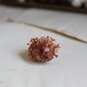 初めはピンクゴールドに似た色味ですが、空気中の酸素・水分・人間の汗や皮脂にって経年変化し、使い込んだアンティークのような質感に変化していきます。変化が気になる場合は、アクセサリー用の磨き布、金属磨き液などを使えば、輝きが蘇ります。経年変化も味わいながらお楽しみいただければ何よりです。