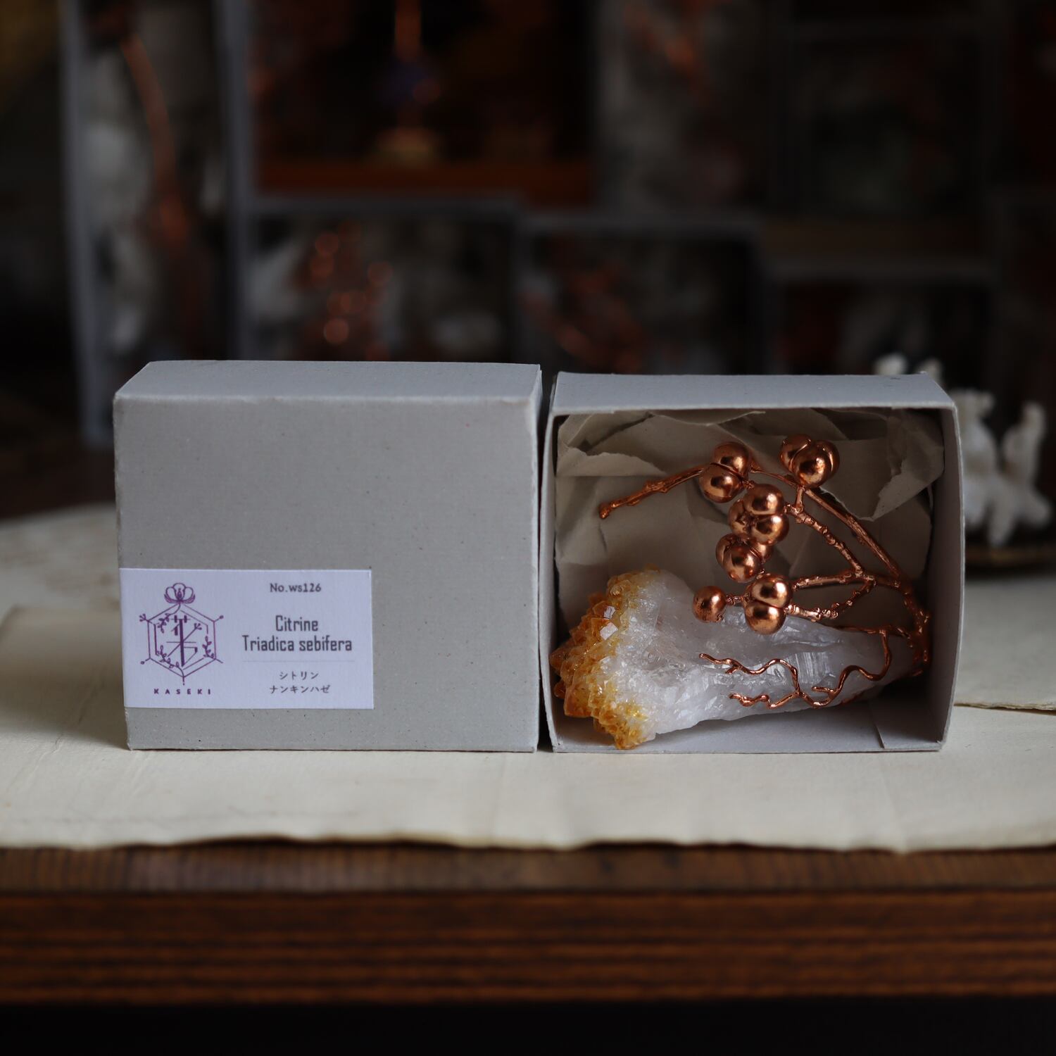 素材:シトリン(加熱アメジスト/ブラジル産/Ametista de Sul Rio Grande do Sul)・ナンキンハゼ(銅コーティング)
