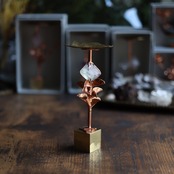 鉱物と銅化した本物の植物を使った、宝物を飾るためのスタンドです。