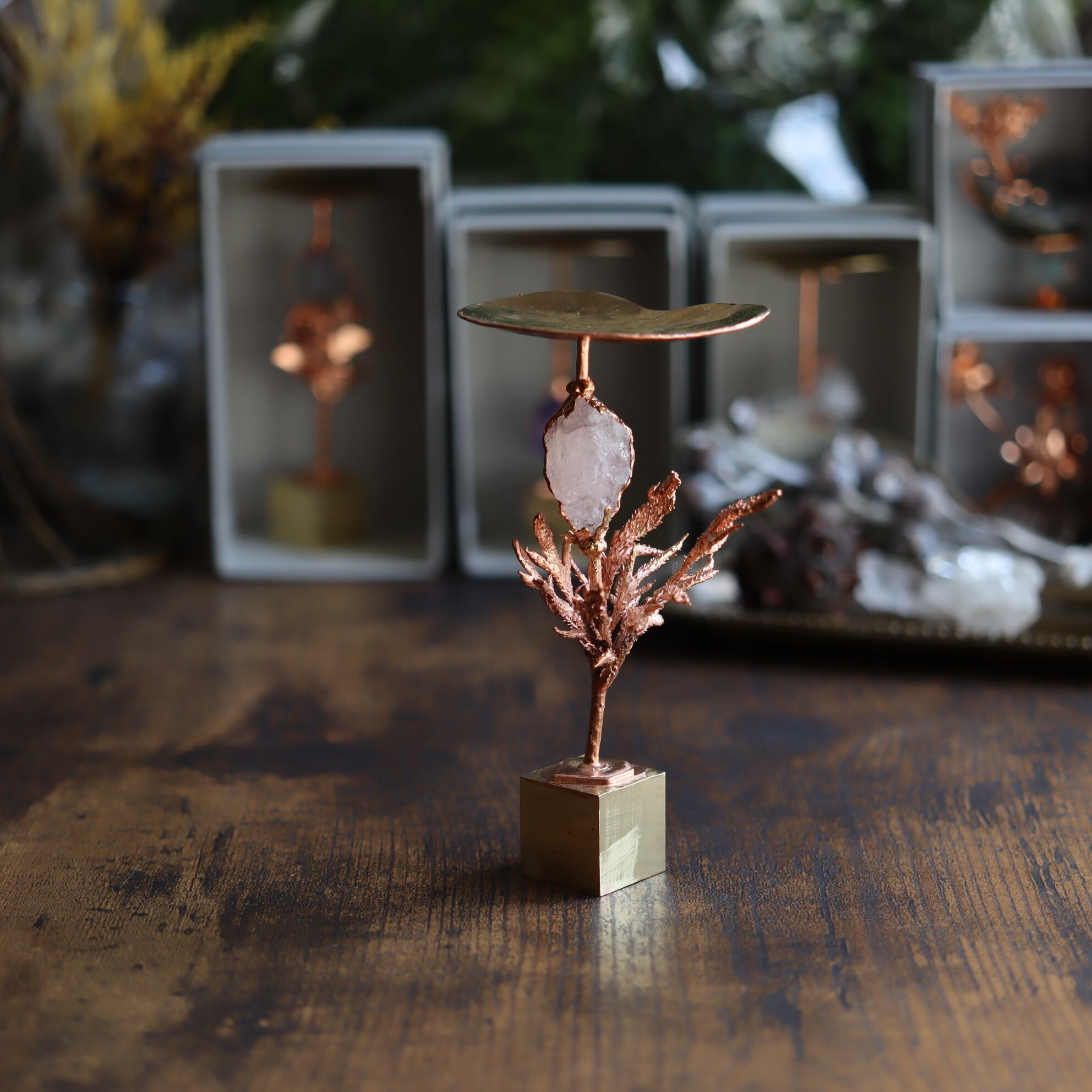 本物の鉱物と植物を使った、宝物を飾るためのスタンドです。