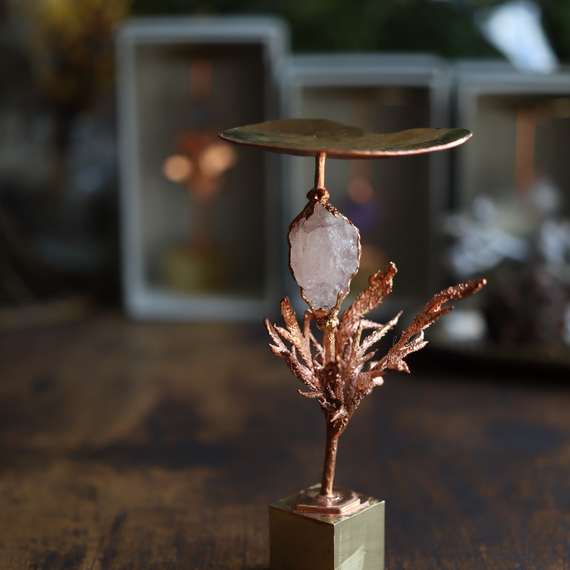 銅化した本物の植物と鉱物を使ったアートオブジェ。