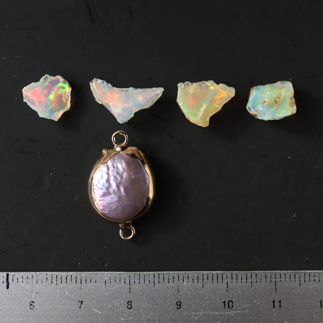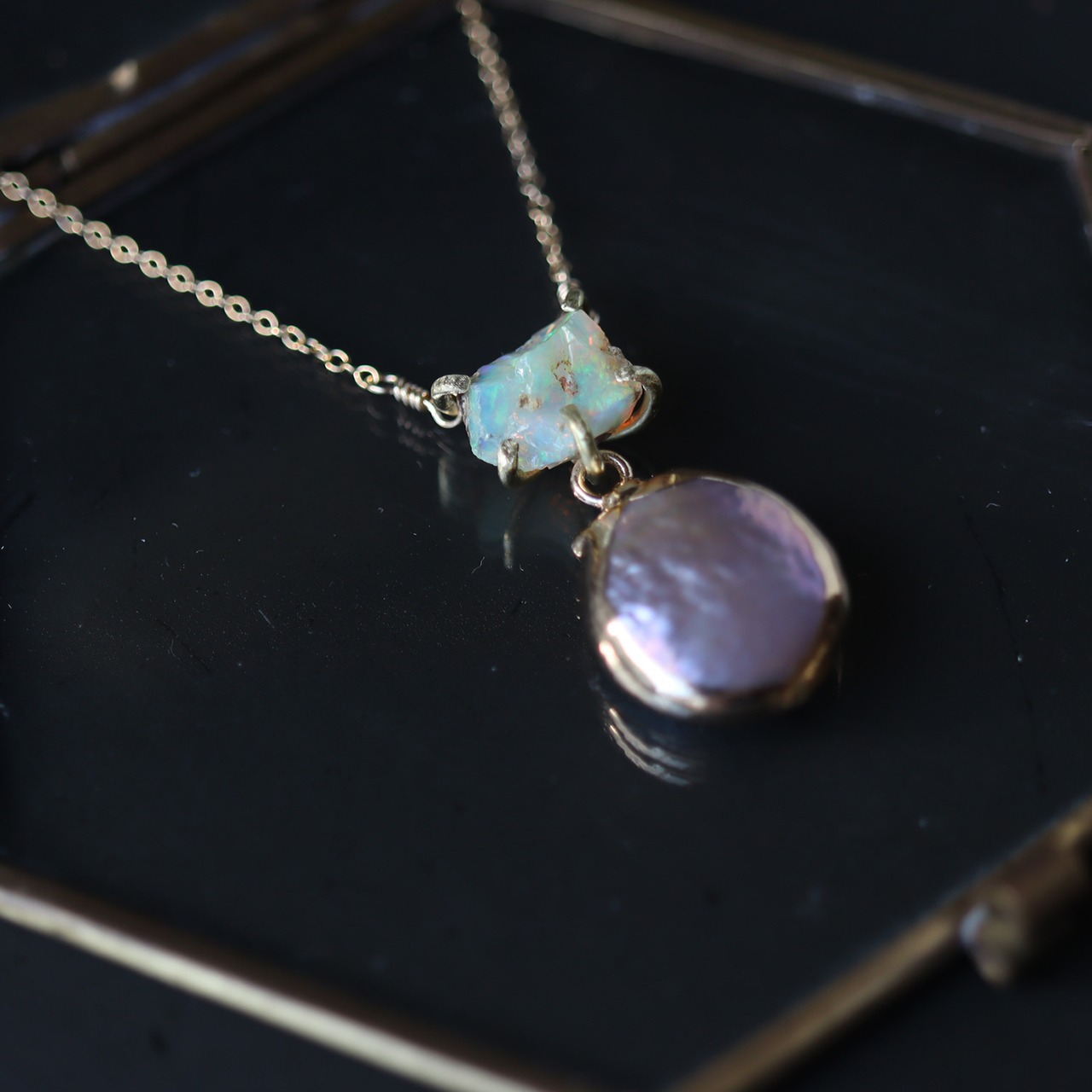 原石オパールとパールのネックレス