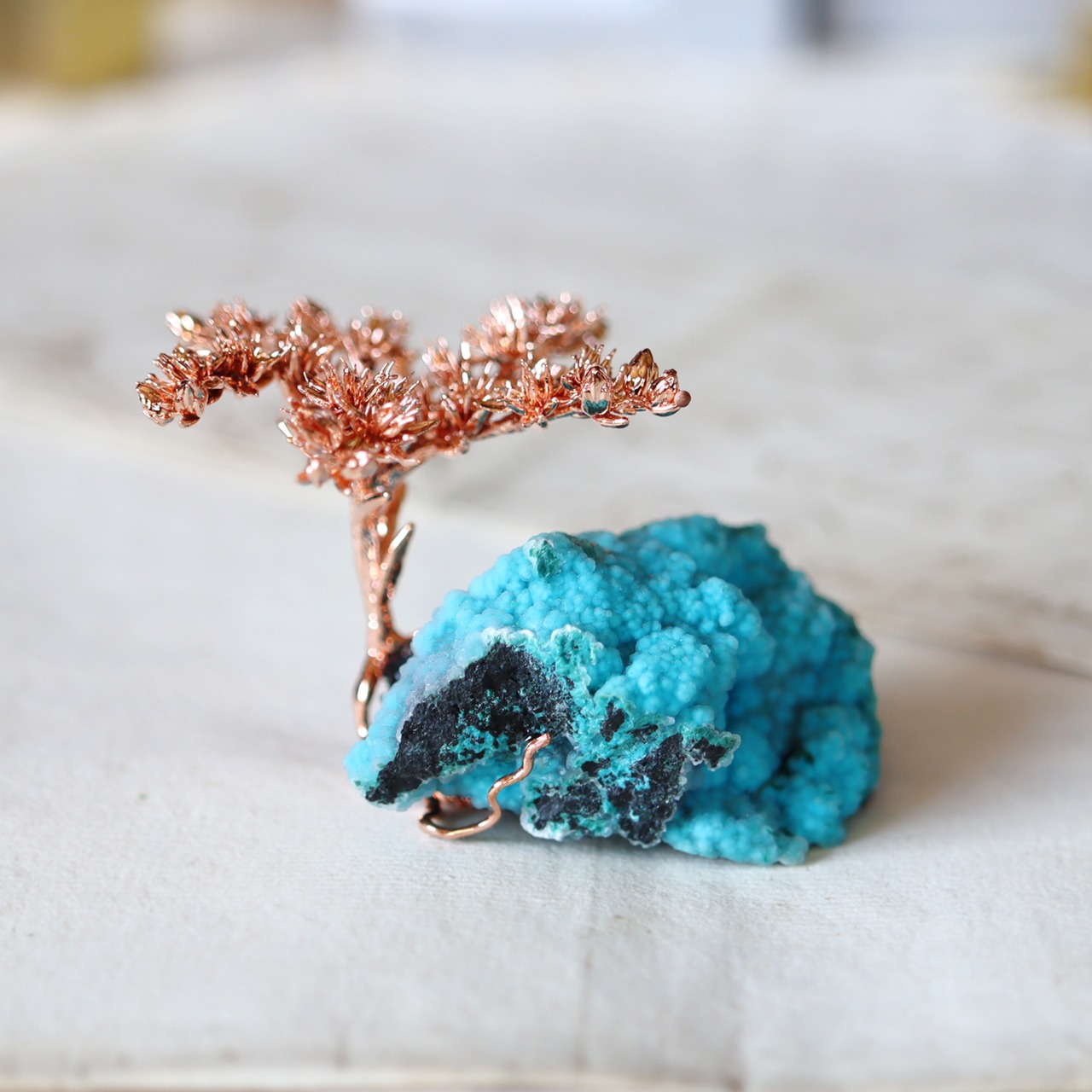 銅化した本物の植物と鉱物を使ったアートオブジェ。