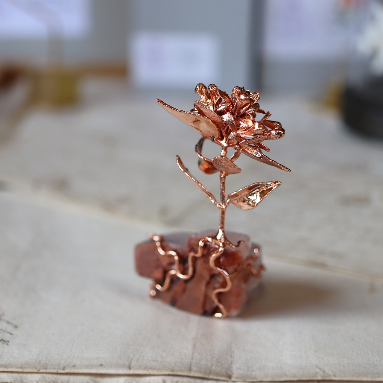 銅化した本物の植物と鉱物を使ったアートオブジェ。